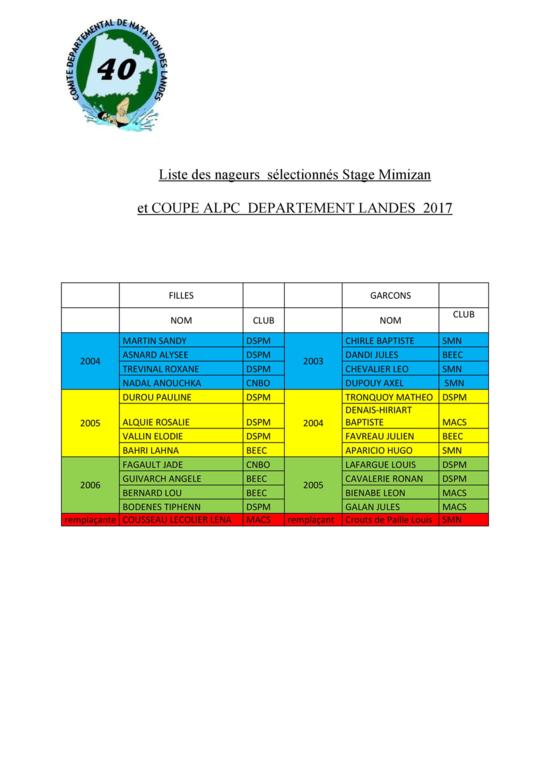 4 nageurs du club ont été sélectionnés pour représenter les Landes: Il s'agit de Léna COUSSEAU-LECOLIER, Léon BIENABE, Baptiste DENAIS-HIRIART et Jules GALAN