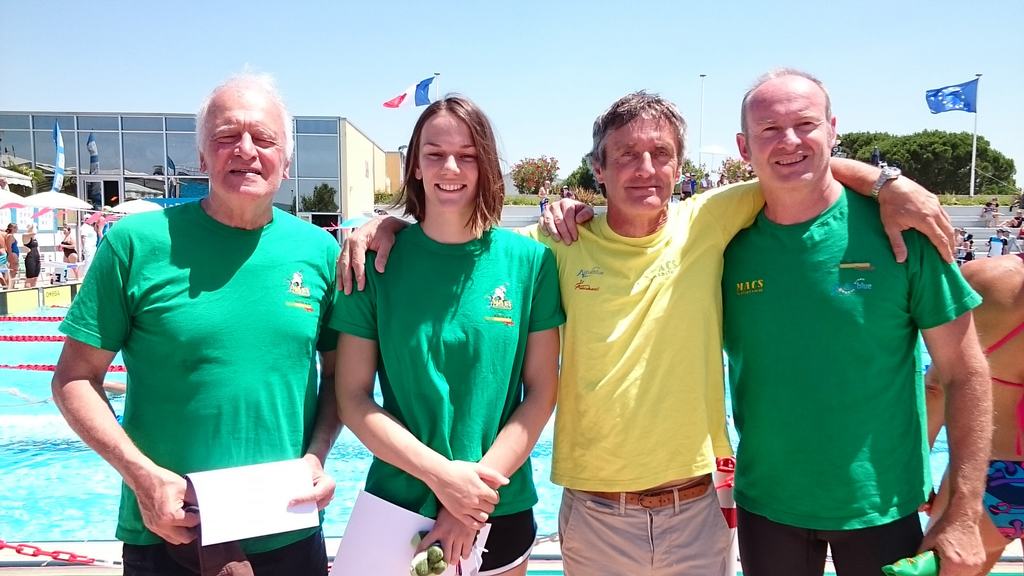 Eve-Marie GUERMONPREZ en C1, 5 courses 5 médailles, 4 en Or sur 50, 100 et 200 m Brasse (3 nouveaux records de Nouvelle Aquitaine) mais aussi 200 4N et 1 médaille de Bronze sur 50 m Papillon ...