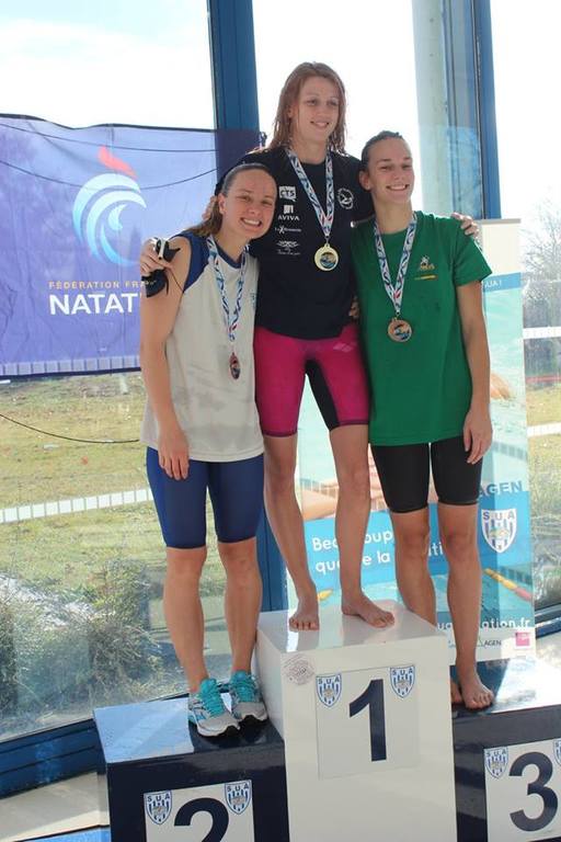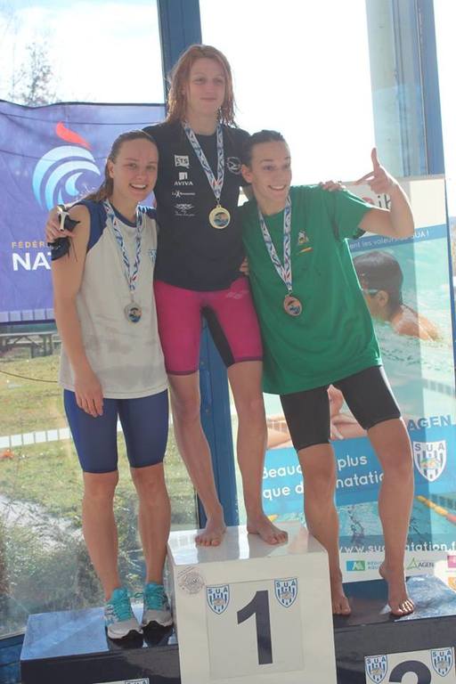 Médaille de Bronze pour Eve-Marie GUERMONPREZ au 50 m Brasse en 34.68, et un coup de bambou mémorable au 100 m Brasse !!! Difficile le bassin de 50 m quand on manque d'entraînement ...